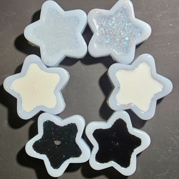 Bei dieser Variante habe das Pigment in schwarzes Harz gerührt und in das Sternchen gegossen.
